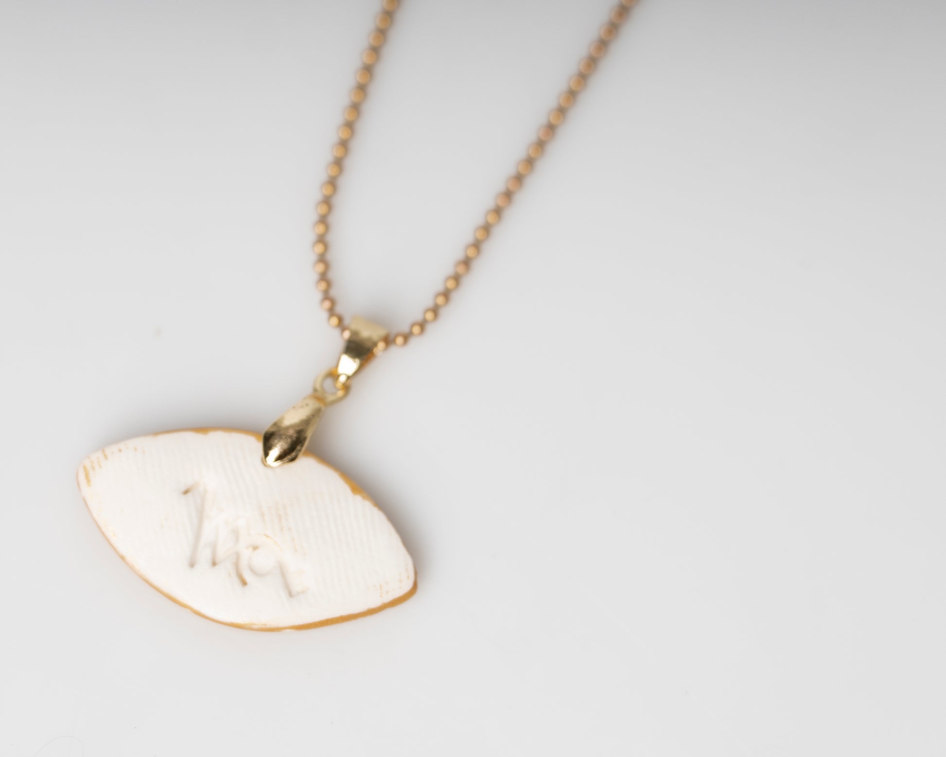 Este colgante artesanal en porcelana, decorado con oro líquido, rinde homenaje al espíritu del ciervo: protector, valiente y ligado a la naturaleza.